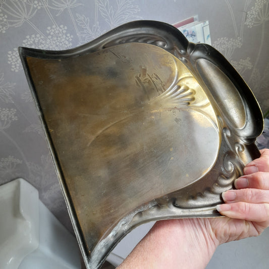 Antique Art Nouveau Brass Crumb Tray & Brush