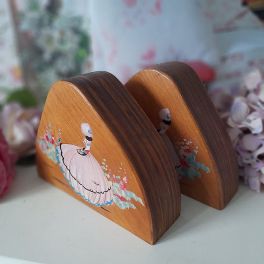 A Pair Art Deco Crinoline Lady Wooden Bookends