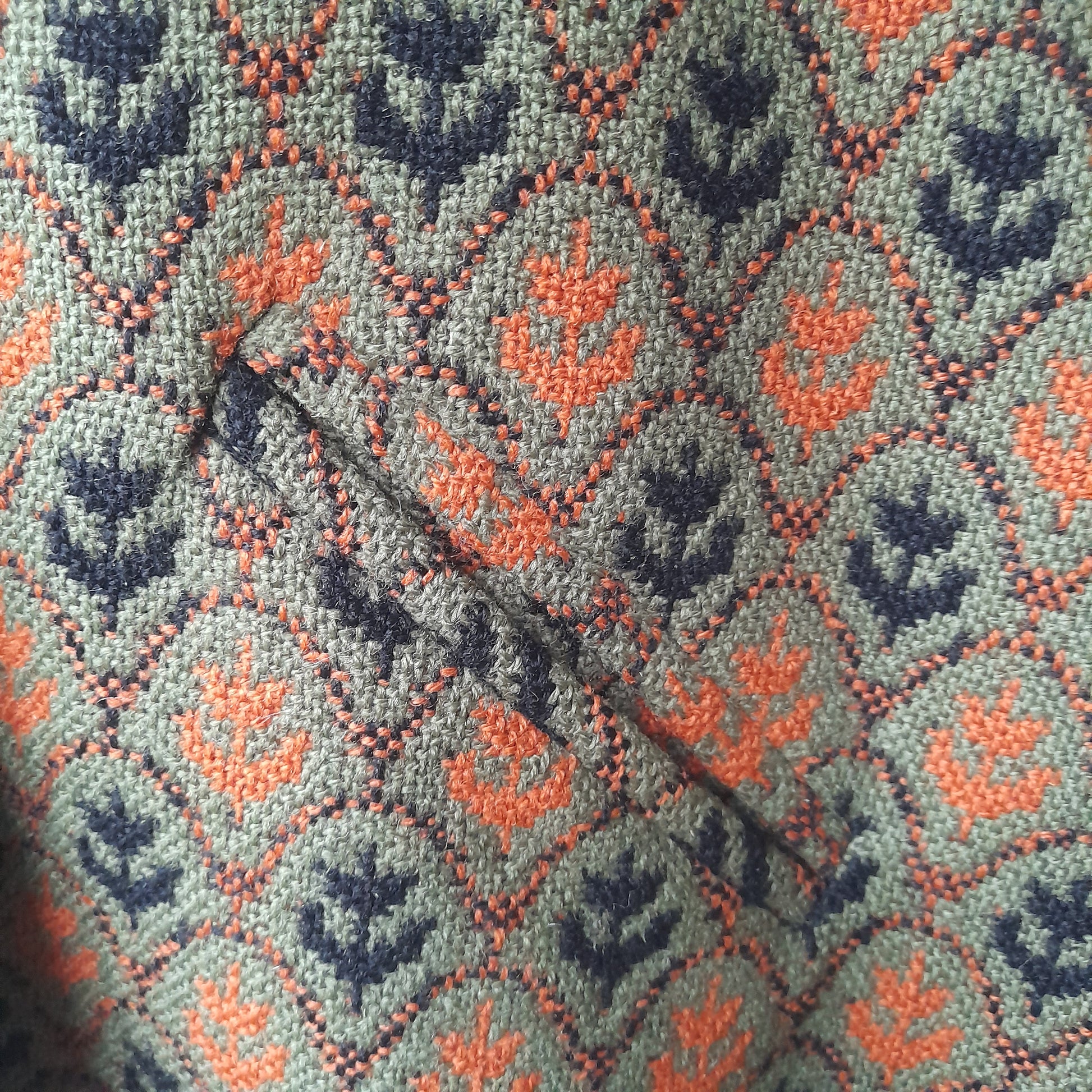 Vintage Welsh Tapestry Cape in Olive Green Black & Orange Tulip Design by Brynkir Mill