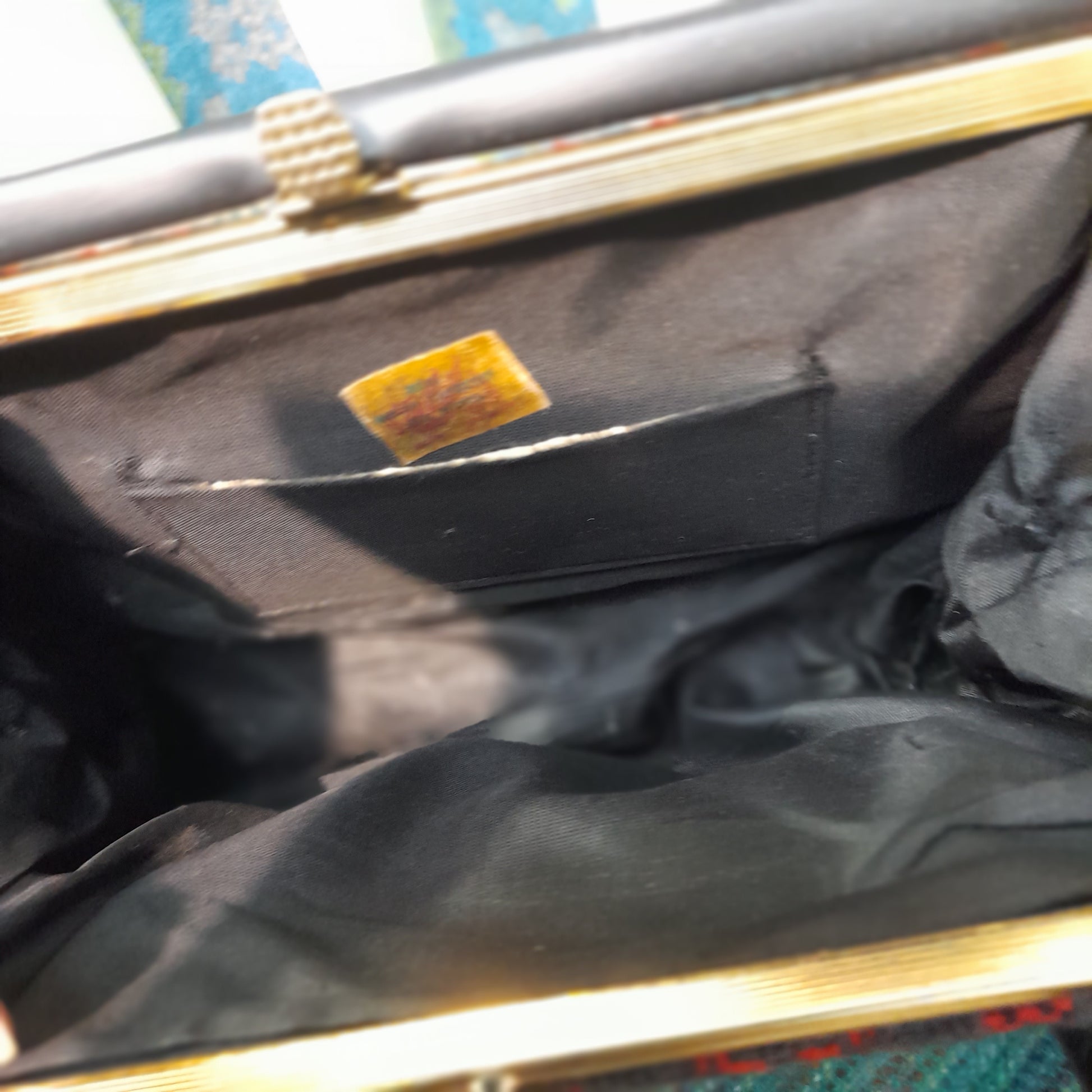 Gorgeous vintage Welsh wool tapestry handbag in red, charcoal & black. 1960s mid-century mod fashion. Good condition for age. Original label inside. See matching retro pea coat in separate listing.